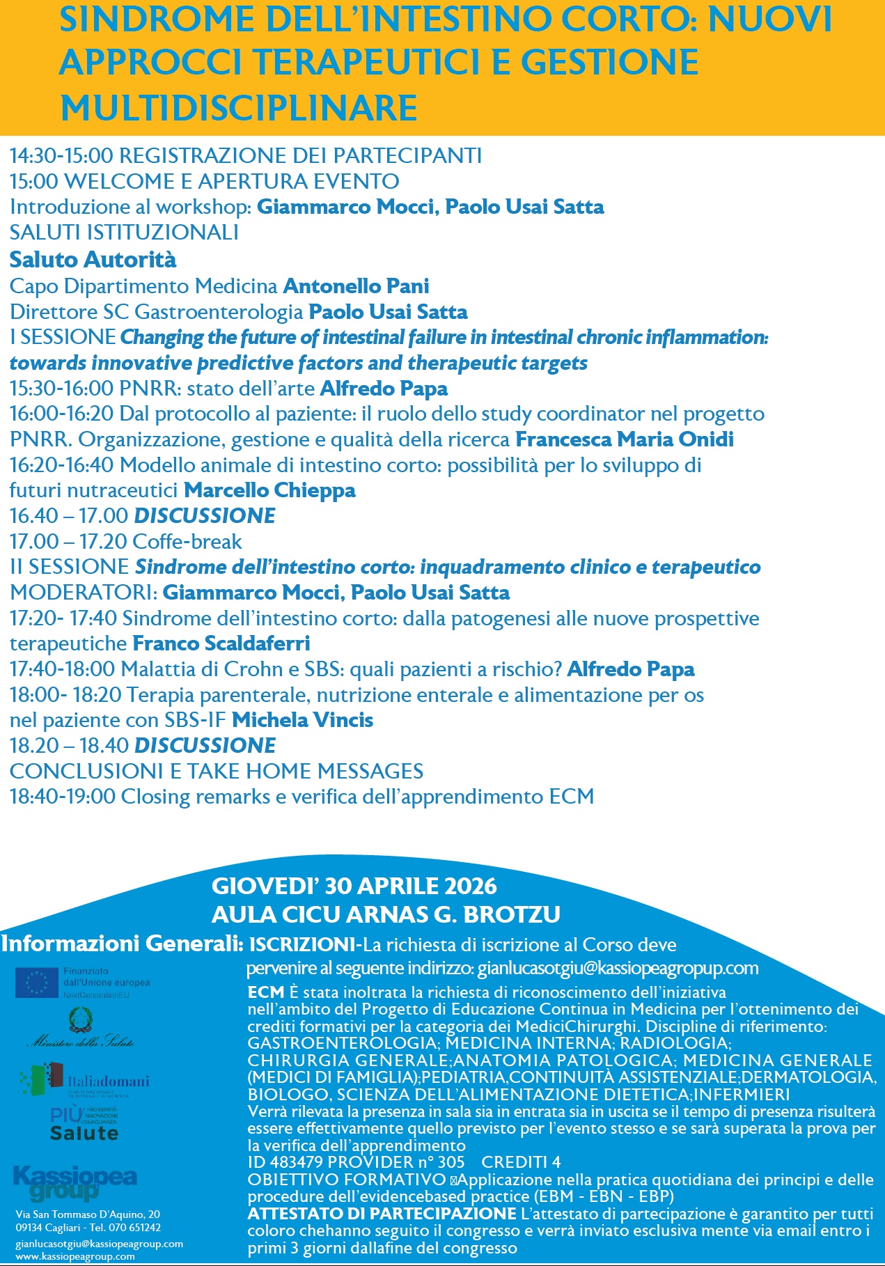 Per le iscrizioni inviare una mail a: gianlucasotgiu@kassiopeagroup.com
